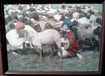 [Note from Man Mohan Munshi Ji: [This is a photograph ] of a Kashmiri Pahal woman Her head dress and silver ear rings are unmistakably kashmiri/ Dress of Gujar women is totally different . More ever Gujars mostly tend buffaloes and not sheep. Herds of Bakarwals or Gaddis consist of sheep as well as goats. Only herds of Kasmiri Pohals are entirely of sheep]