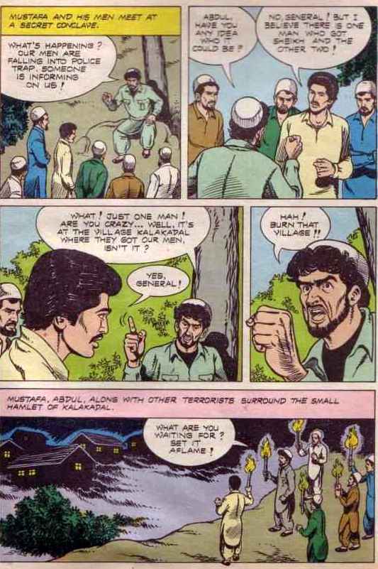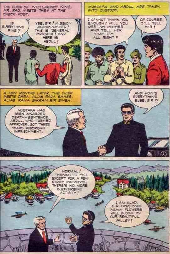 The way that story unfold reminds one of the gratuitous Hindi films on Kashmir made in 1990s. And this comic came out in 1989.