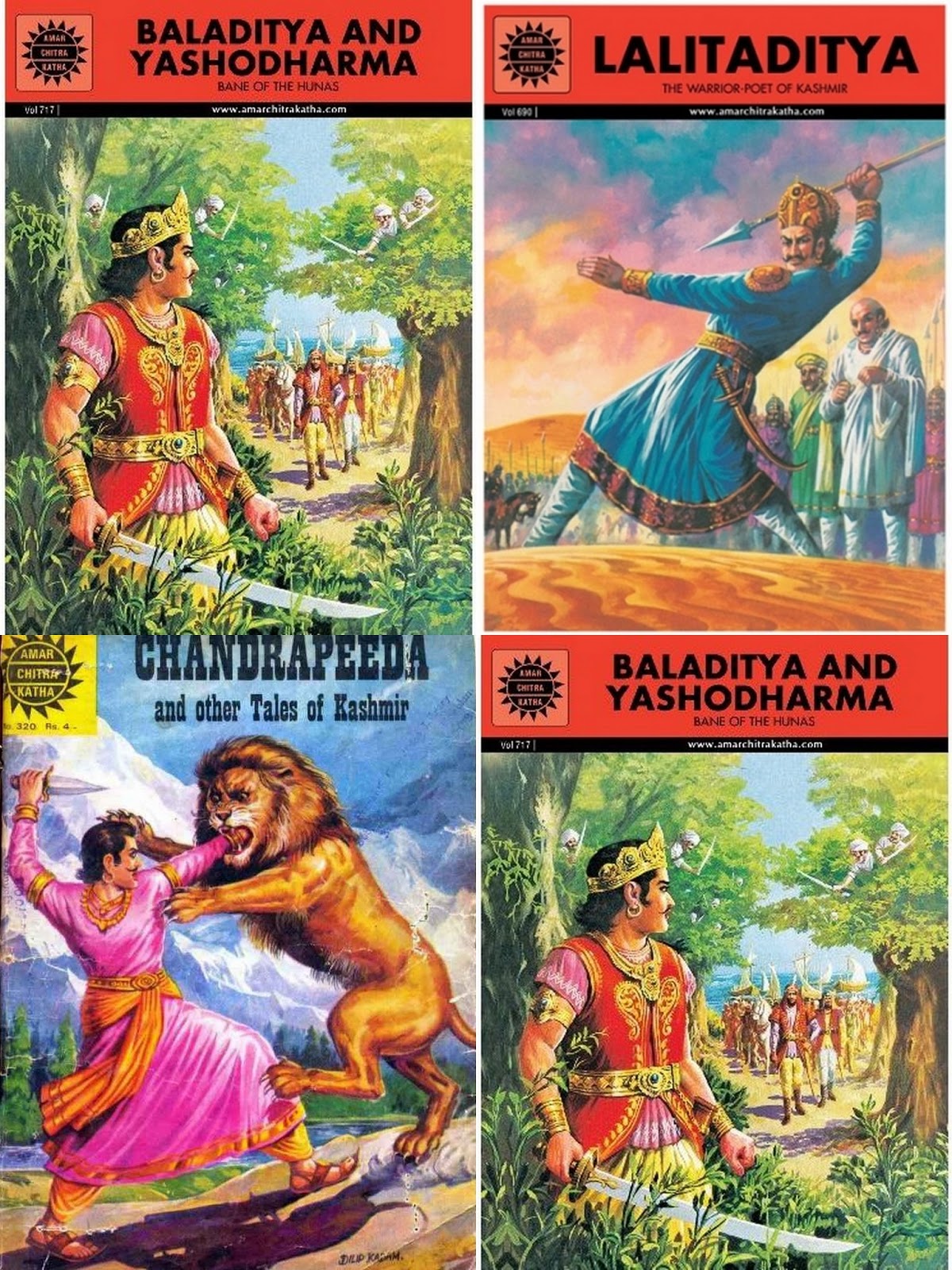If it’s Amar Chitra Katha, it has to be history. Amar Chitra Katha has a bunch of issues based on stories from Kalhana’s Rajatarangini. Here the action is based in Kashmir (and please note Dharmendra or Amitabh was not the first hero to battle a wild cat, Jaydpeeda of Kashmir was). Some issues carry stories from Somadeva’s Katha Sarit Sagara (in which we have more of Ujjain), and there are are some ancient ‘travelogue’ issues in which we see a panel of Kashmir (like in case of comic on Hiuen Tsang). That’s about it.