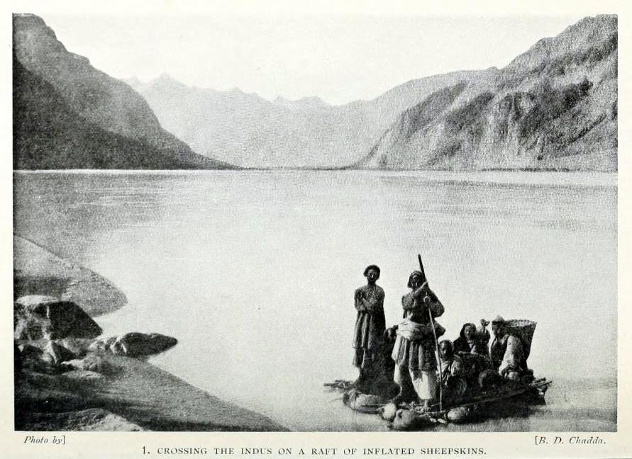 Crossing the Indus on a Raft of inflated Sheepskins. [More on crossing rivers on dead skin, later]