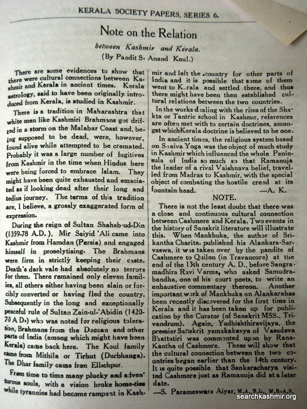 Note on the Relation between Kashmir and Kerala