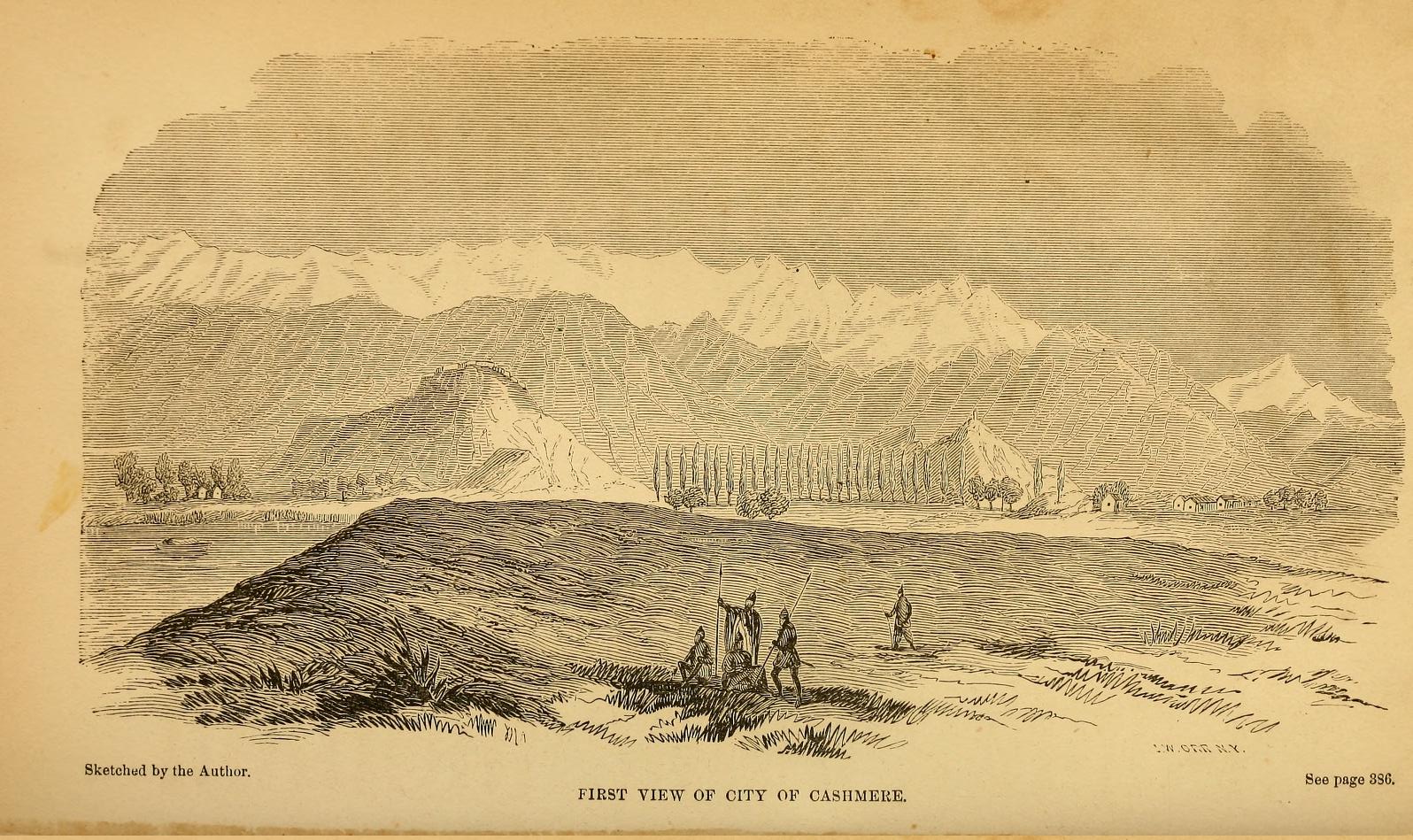 From ‘Wall-Street to Cashmere : a journal of five years in Asia, Africa, and Europe : comprising visits, during 1851, 2, 3, 4, 5, 6, to the Danemora iron mines, the “Seven Churches,” plains of Troy, Palmyra, Jerusalem, Petra, Seringapatam, Surat, with the scenes of the recent mutinies (Berares, Agra, Cawnpore, Lucknow, Delhi, etc., etc.), Cashmere, Peshawur, the Khyber pass to Afghanistan, Java, China, and Mauritius’ (1859) by John B. Ireland.