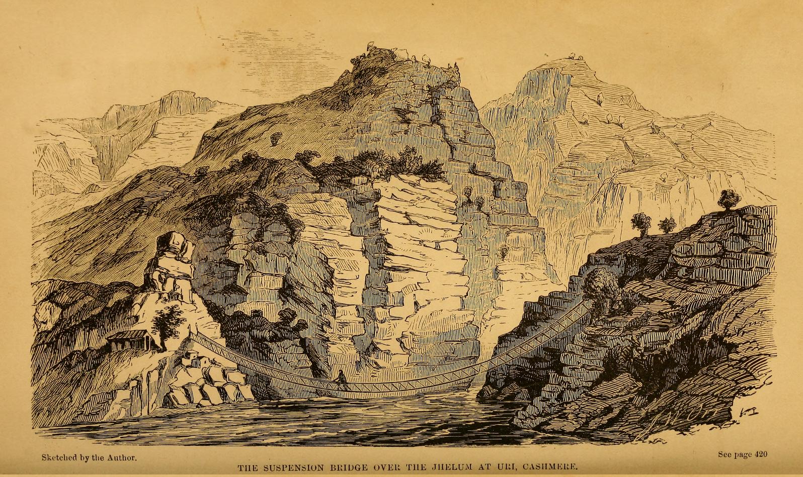 “The Cashmere valley differs in one respect from every part of India. In India they always live in villages ot towns, while here,on every side peering from among the trees, on the mountain side, or boldly conspicuous on some naked rock, are the huts or hovels of the present ryot occupants and the ruins of former ones. Occasionally a large house will indicate the residence of a jemindar (owner of the land). the country is badly cultivated, and almost depopulated by the tyranny that has existed for some years past.