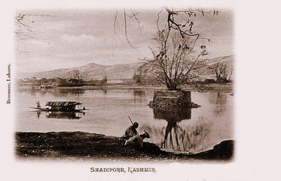 [Image on left: The Chinar tree at Shadipore in a photograph by Fred Bremner. 1905 ]