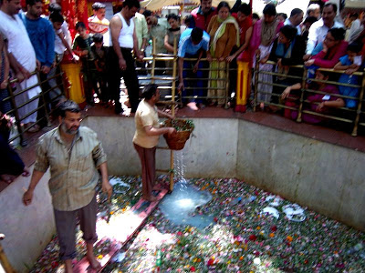 The whole shrine was repaired with money raised by pubic subscription. The late Maharaja Pratap Singh erected a pretty little marble temple on the old site in the centre of the spring.