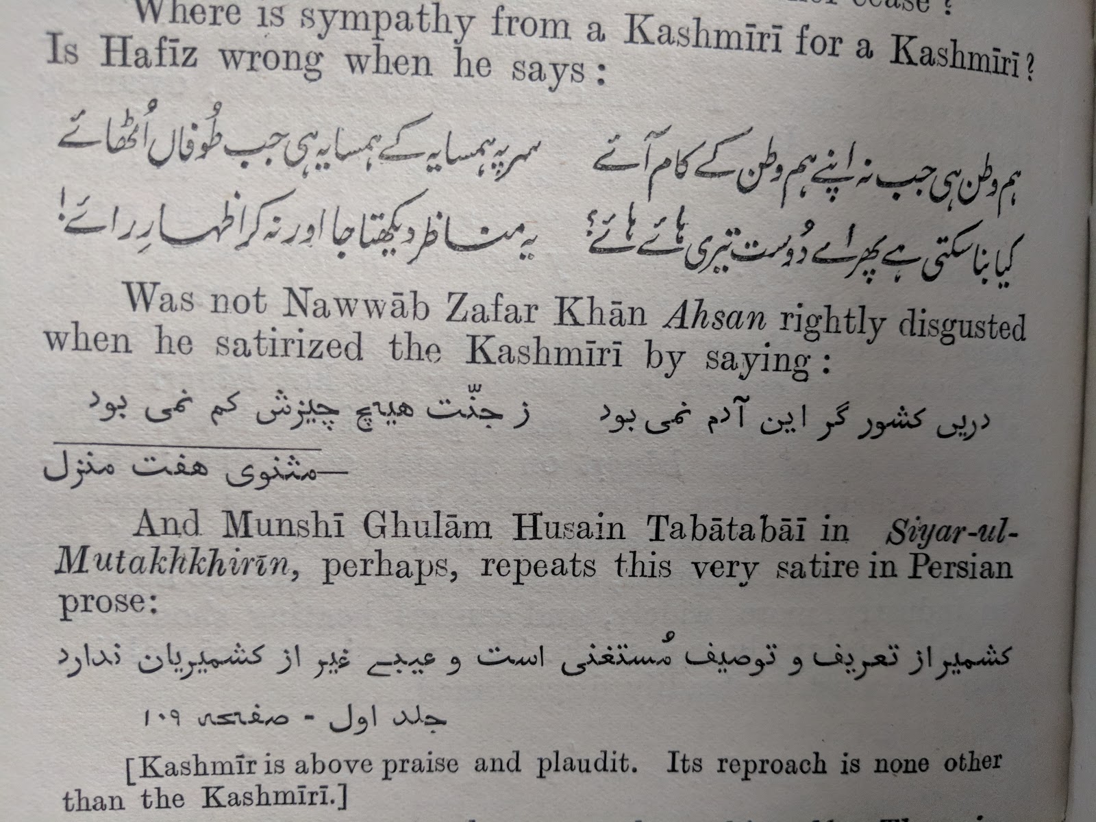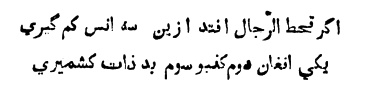 Agar kaht-i-mardurn uftad, az ín sih jins kam gírí; Eki Afghán, dovvum Sindí, siyyum badjins-i-Kashmírí