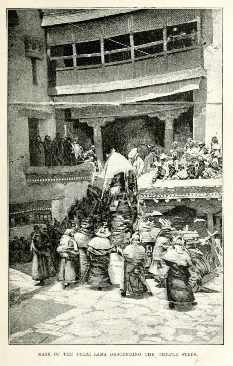 | Mask of the Dalai Lama descending the temple steps, Hemis, |