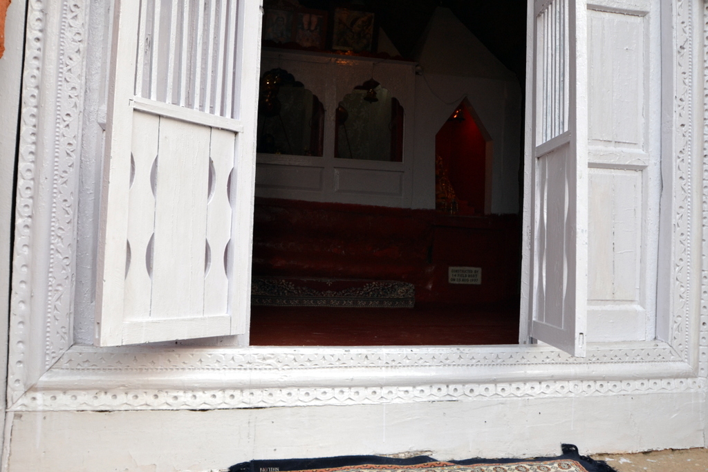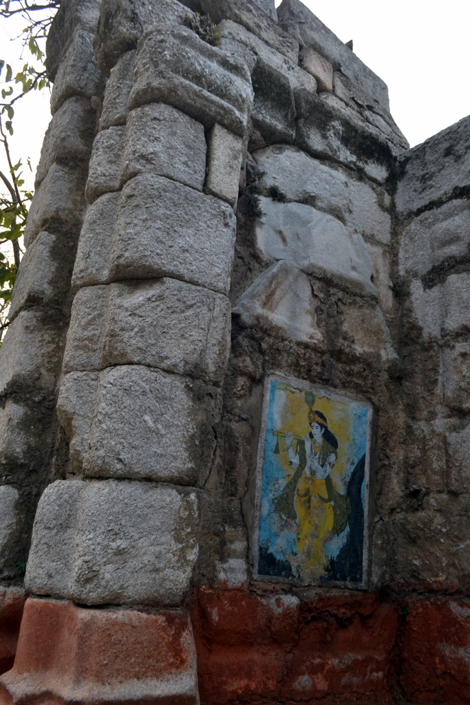 The walls of the colonnade now have crude murals of Hindu deities.