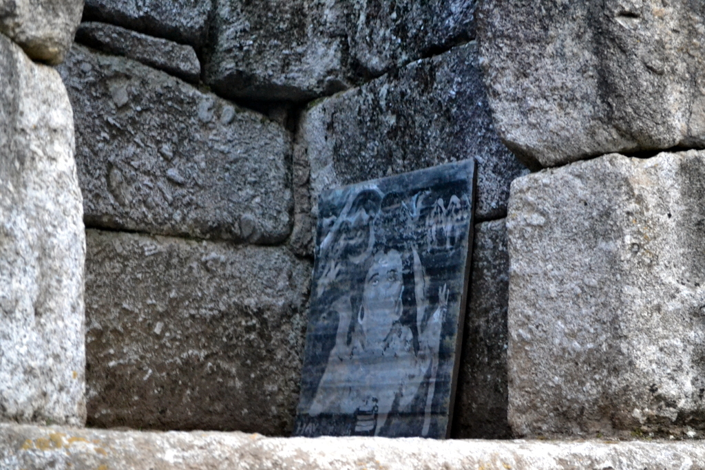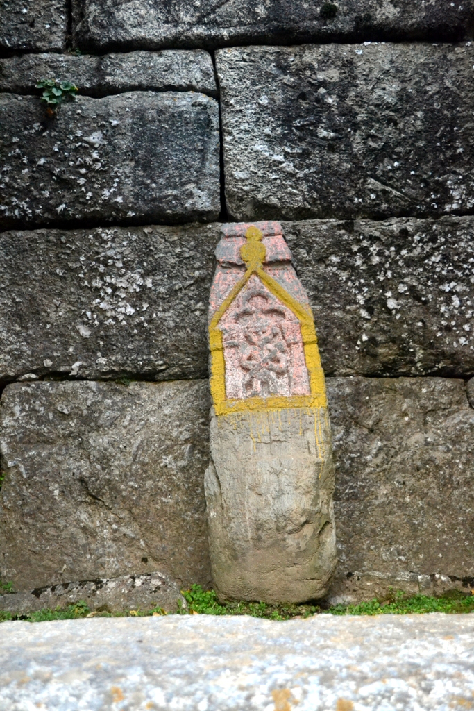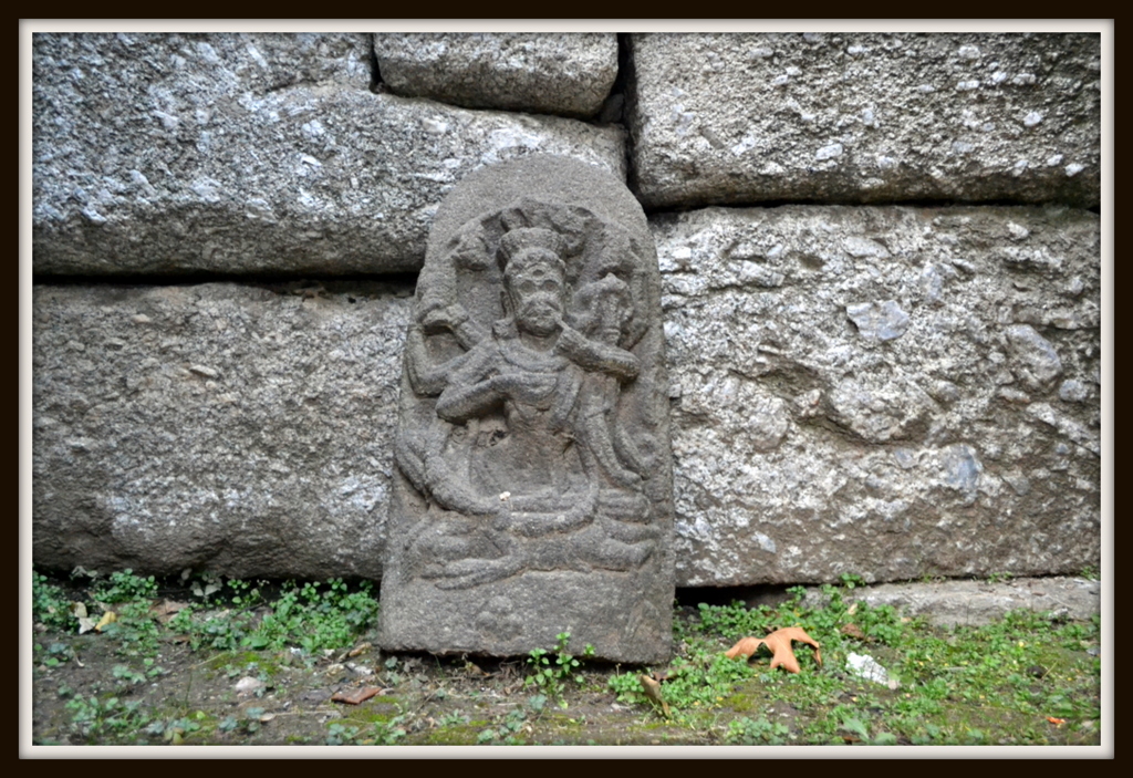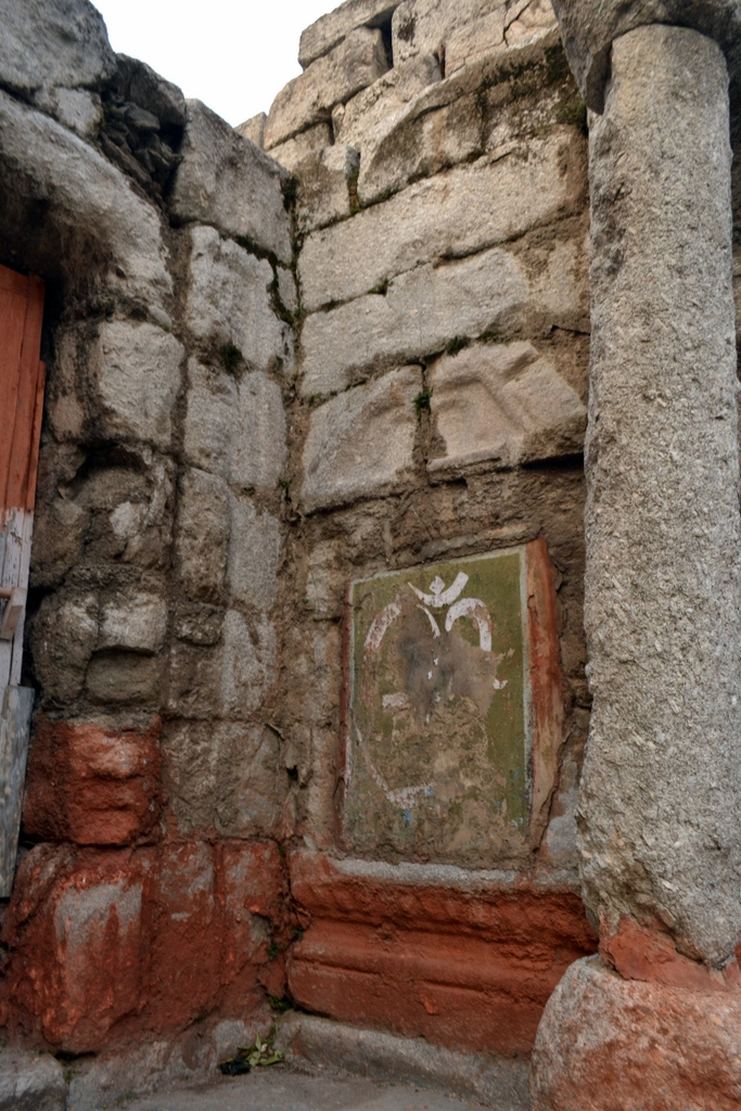 Inside the colonnade are now placed these interesting ancient sculptured stones (again crudely painted over). [Some of them are Hero stones or Sati Stones]