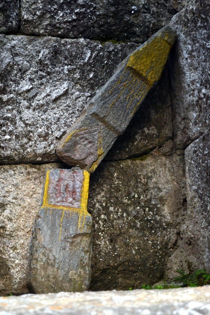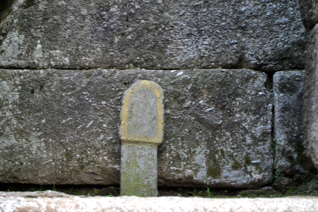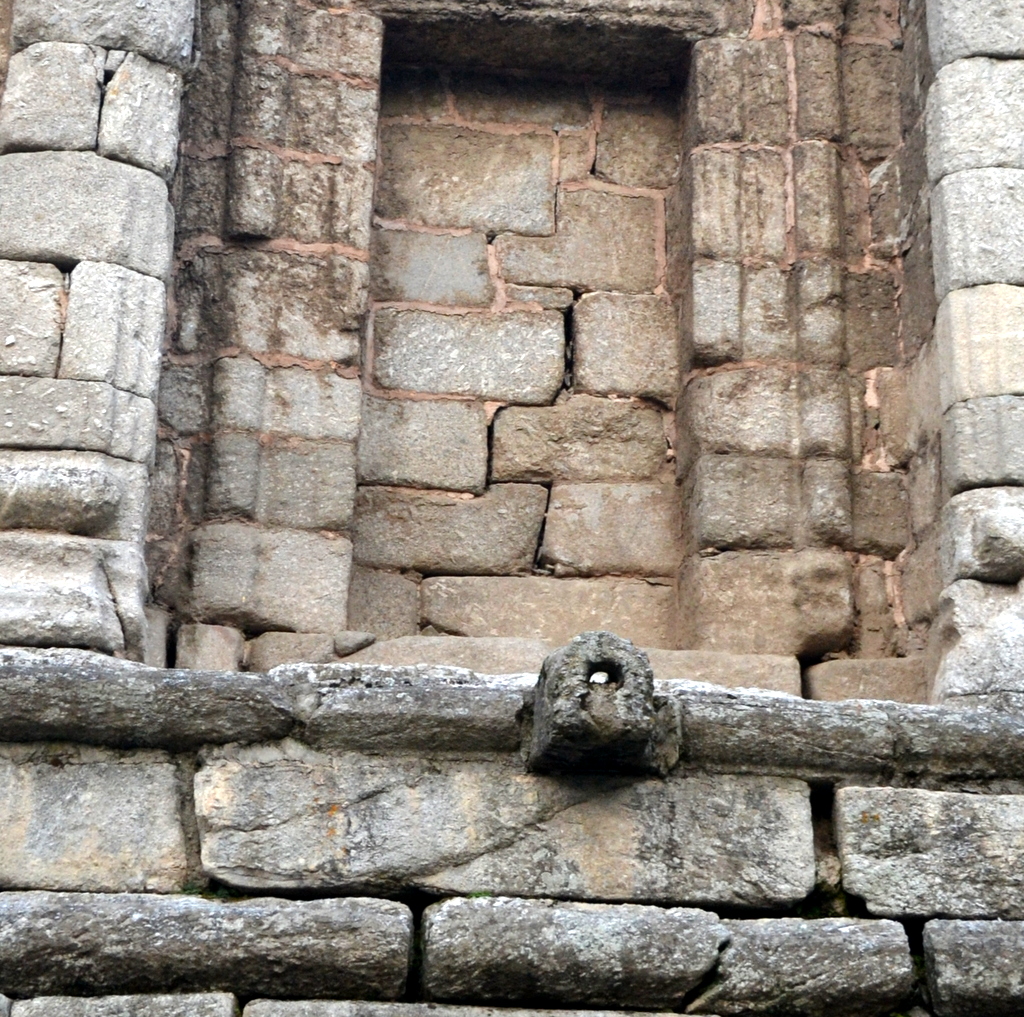 Immediately outside the side-door mentioned above is a square structure built of plain blocks of stone. The middle portion of each of its four walls has fallen down, and the gaps have been filled in with small chips of stone built in mud. It is difficult to surmise what was its original purpose.