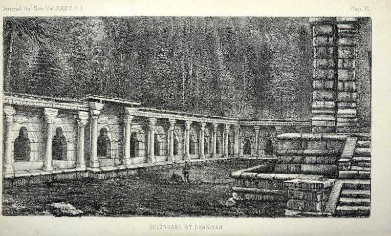 | Sketch of Colonnade from ‘Notes on some of the temples of Kashmir, W.G. Cowie, 1865 |