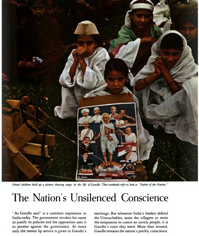 One may ask why. After all it does look like a perfect picture for an article on Gandhi. Children = innocence = unsilenced Conscience. Children in love with Gandhi = The Nations’s un-silenced conscience. Simple and brilliant.