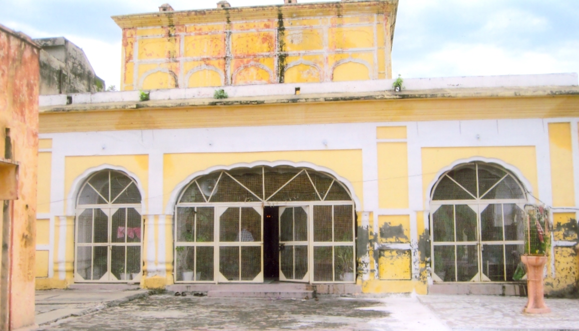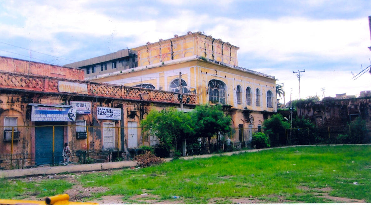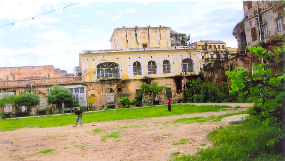 | The filled up tank in front of the temple used by Dewan Badrinath School as play ground. Note the western gate of the old Secretariat Jammu on the right side |