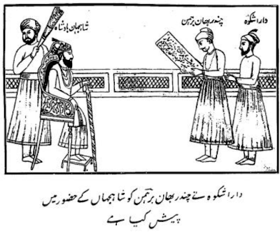 Chandra Bhan Brahman presented by Dara Shikoh to Shahjahan. Dara once asked Brahman to recite in the presence of Shah Jahan the following verse: “So greatly is my heart associated with infidelity, that many a time When I took it to Mecca, it returned a Brahman.”