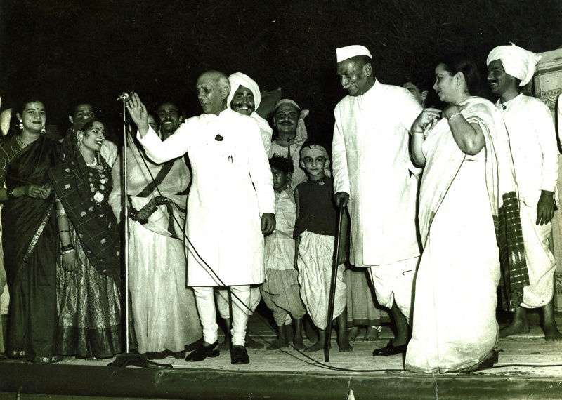 | Gopal Kaul in a play (with turban on right corner) along with Pandit Jawaharlal Nehru and Babu Rajendra Prasad. |