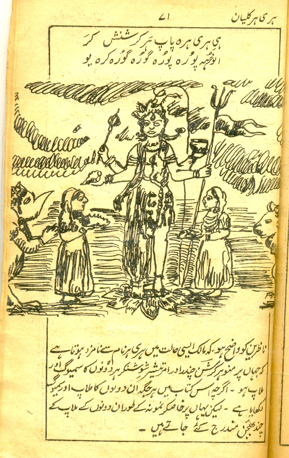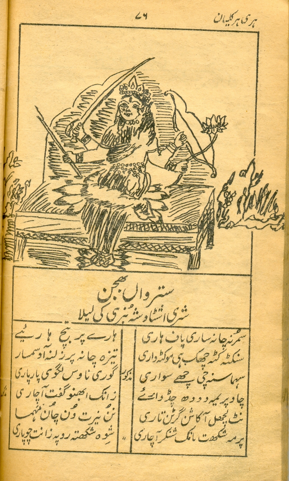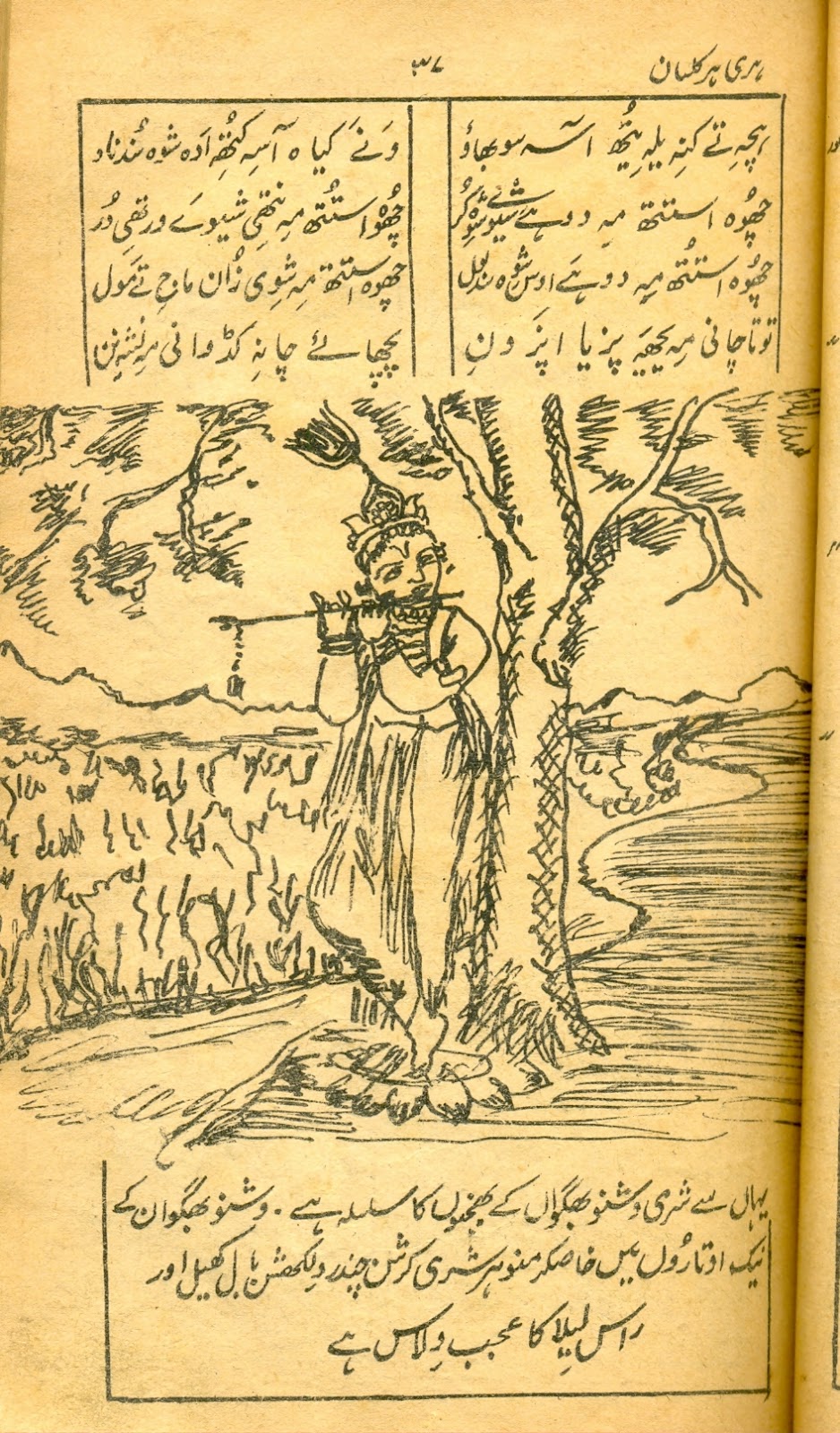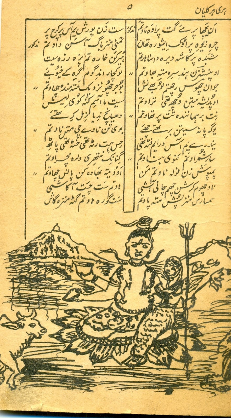 The publication is in fact an abridged edition of Shiva parinayah an anthology of poems of Krishna Razdan, published by the Royal Asiatic Society of bengal in six volumes from 1914 to 1924 with Sanskrit Chaya by Mukundram Shastri. The book appeared in the life-time of the poet under the editorship of George Abraham Grierson in Devanagri script. [available here]Harihar kalyan is the main title of the book and its subtitle is Shiva lagun (The wedding of shiva) as there are several sweet songs pertaining to the marriage of Shiva with Parvati inculded in the book. Both the titles appear on the front page of the book in bold letters. This excellent book is prized by all those who have some taste for good and genuine poetry that is why this book can be seen almost in every Hindu household. But the genuine and creative poetry of Razdan has attracted the attention of the learned and cultured Muslims also. A keen observer will not fail to see the copies of Harihar kalyan in sophisticated Muslim households. Though this book is small in size and volume as compared to Shiva parinayah, the fame of Razdan as a poet of repute rests on this book alone.. Shiv patinayah is no doubt comprehensive, well arranged and neatly printed verse anthology of Krishna Razdan but it is till now known only to a few researchers and readers of Kashmiri because it is not available in the market and its Devanagri script has not been popular enough so far. The book contains some of the most popular compositions of the poet, which form an invaluable part of our verse literature. The compoosition inculded in Harihar kalyan are generally termed as ‘lila’ (the play or the sport). In fact all the religious songs in Kashmiri have been classed or termed as lila literature, but speaking in the language of literature, ‘lila’ in itself is not separate form of poetry.