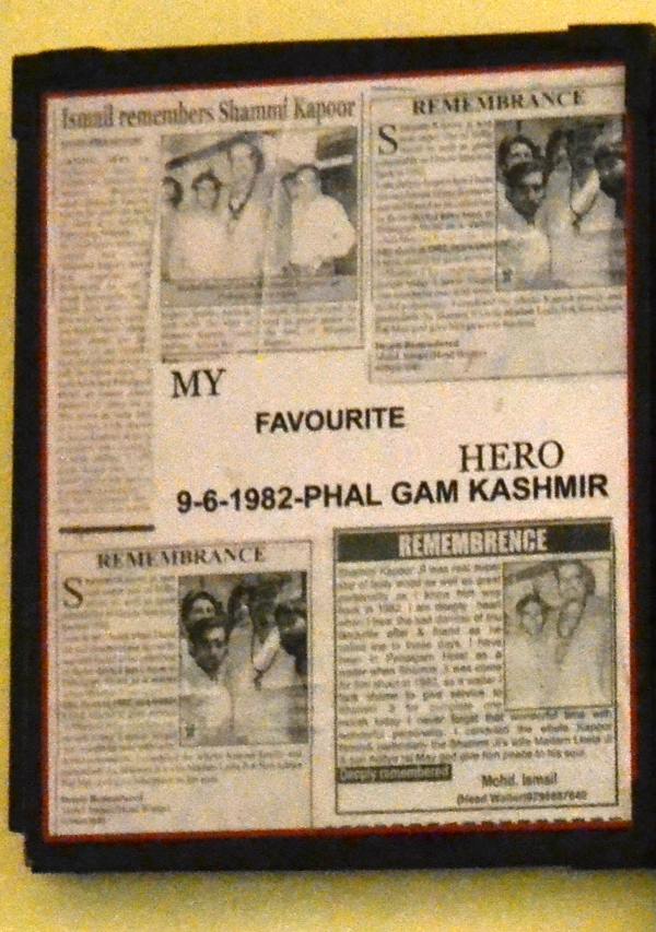 Mohd. Ismail is probably the biggest Shammi Kapoor fan from the state. Ismail spent most of his life doing odd jobs at Pahalgam, Gulmarg and other tourists spots that were popular with Bombay filmwallas. He met lot of stars, had himself photographed with quite a few of them. But Shammi Kapoor remained a lifelong favorite. While most of Kashmir Media was a bit quite on passing away of Shammi Kapoor, Ismail was publishing Remembrances. Ran into Ismail at my sister’s wedding reception. He was supplying water.