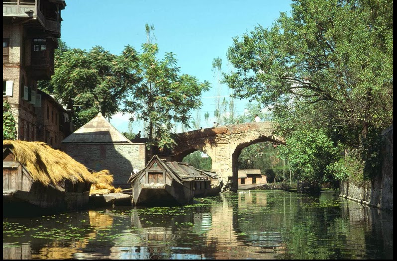 | Back waters of Dal Lake by Bill Strong. October 1975 |
