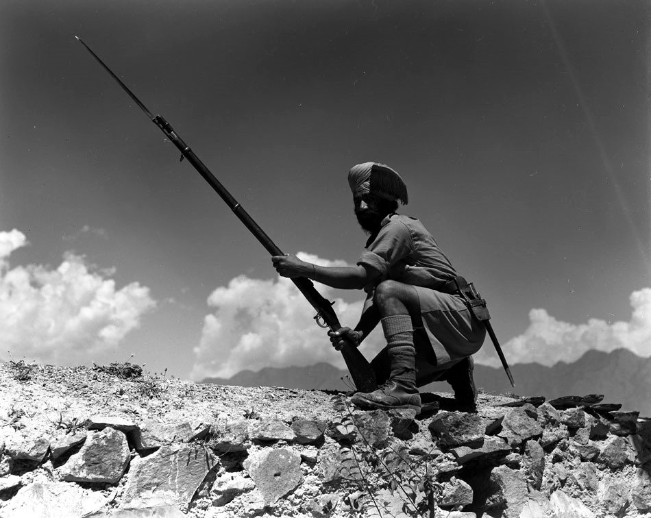 | “Sikh guard poses with vintage rifle, Srinigar, Kashmir, 1945” |