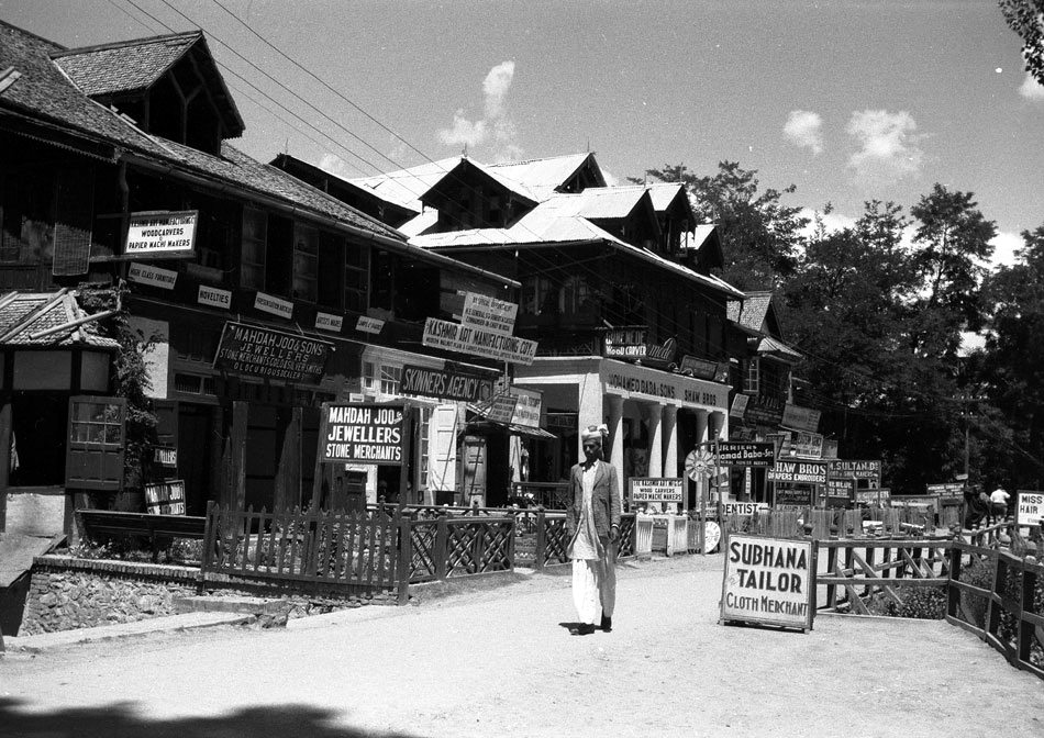 Some of the photographs in the collection are quite unique – like the one of a street and a market scene of sub-urban Srinagar of 1945.