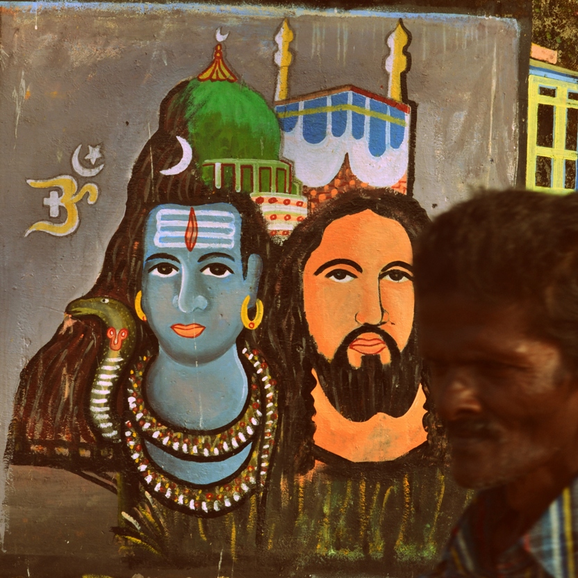 | A wall art I came across in Kochi, Kerala. Artist(right): Jameel February, 2013 |