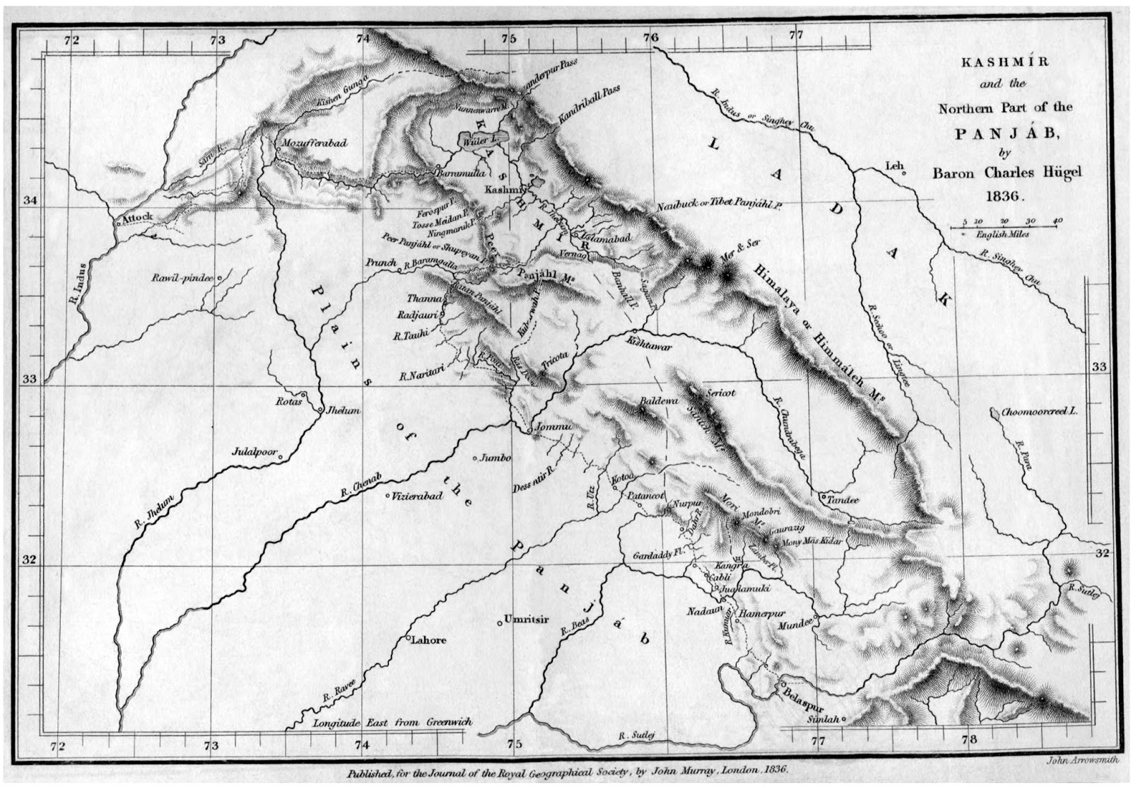 ‘Kashmir and Northern Part of Panjab’ from ‘Notice of a Visit to the Himmáleh Mountains and the Valley of Kashmir, in 1835 ( by Charles von Hügel, January 1, 1836)