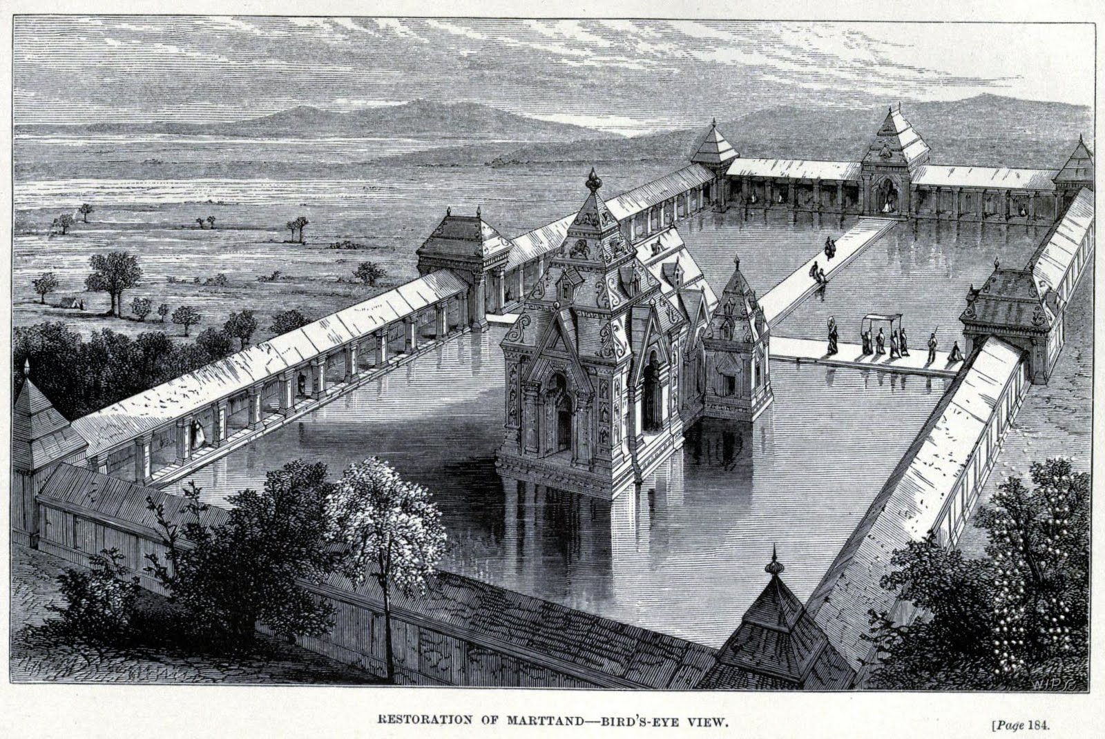 ” The width of the passage between these wings being exactly one-third of that of the wing itself, the roof which covered the two would have been an exact square, the form required as the basis of the pyramidal roof of the Kashmerian architecture.