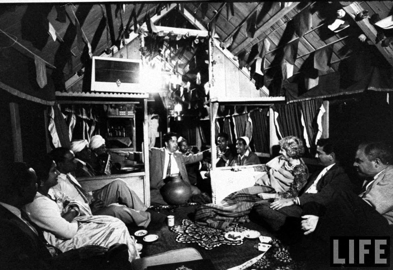 | Mohanlal Aima singing to a group of tourists on a houseboat on Nagin Lake in 1964. Found this photograph by James Burke at Life Magazine archive |