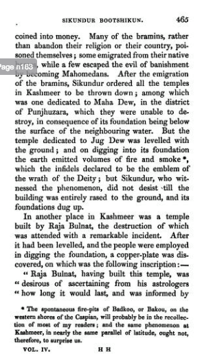 Fact: “Butshikan” term for King Sikandar was used by Muhammad Qasim Hindu Shah for his Tarikh-i Firishta (1612). And he mentions the persecution of Hindus. It was not Kashmiri Pandits who invented the term. It was British to first latched on to the term. Anand Kaul only followed their lead. Unlike Bashir he had no access to Google, to know better. Postcolonialism hadn’t yet arrived.