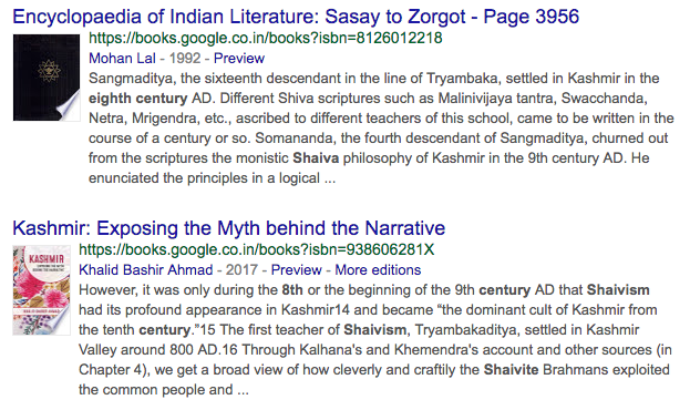 Another example of these half-educated charlatans befool the people. Clearly, the author has no actually understanding of the history of Shaivism in Kashmir. He is out of depth here, and yet he does not shy away from making a fool of himself. Here again, the reader is reminded that even Shaivism was a relatively recent import from mainland India by clever, deceitful, exploitative Brahmins. In his frenzy, the author ignores the actual facts and instead invents another lie: Tryambakaditya settled in Kashmir in 800 A.D.