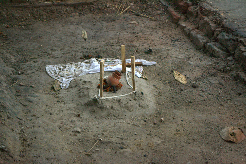 When the last ceremony is over and the Pandit ji leaves, a token pebble is thrown at him as he crossed the main gate…probably so that he does not return soon.