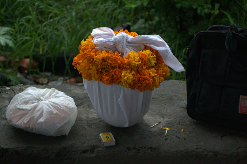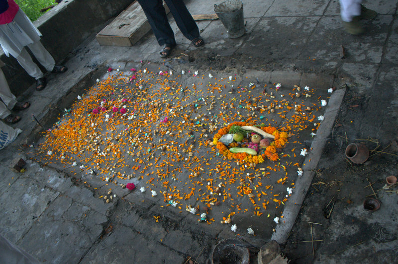 | The spot as it is left by Pandits. Honey, sweets and candy is left (possibly so that ants can do rest of the cleaning) |