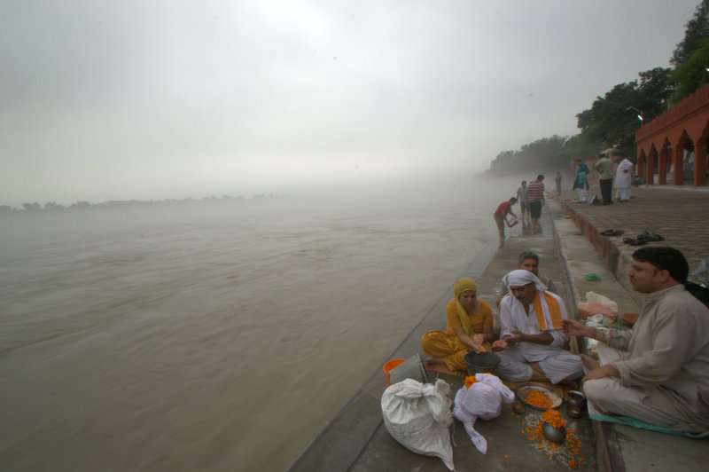 | Still Day 5. Ghat on Chenab river. Akhnoor. Site for immersing the ashes. In older times, in Kashmir, ashes were sometimes kept buried in a wall of the house till they could be immensed at Gangbal Lake in September. Or, at Shadipur. |