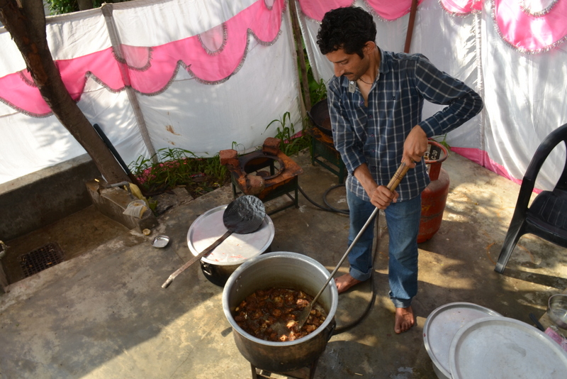 | Evening feast. The Pandit ji also eats meat. |