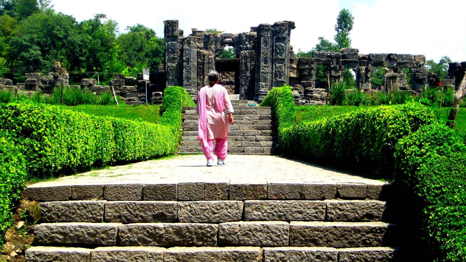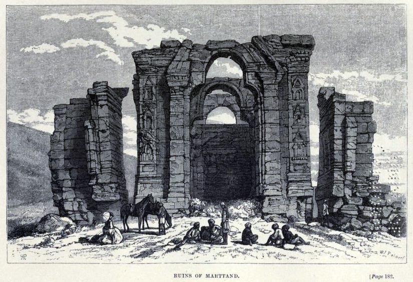 The famous sun temple of Martand built by Laltaditya Mukhpida of the Karkota dynasty during the 8th century on an arid Karewa (Vudar) between Mattan and Achibal. It is believed that Laltaditya build a township of Martanda Desa for which he brought water by the Martand Canal from the Lidar river. The location of the temple/township was selected as it provided a beautiful view of the sunset behind the snowy peaks of Pir Panjal Range. But the view of sunset from the temple is now blocked by hefty overgrown Chinars of the Ranbir Pur Village immediately west of the temple.