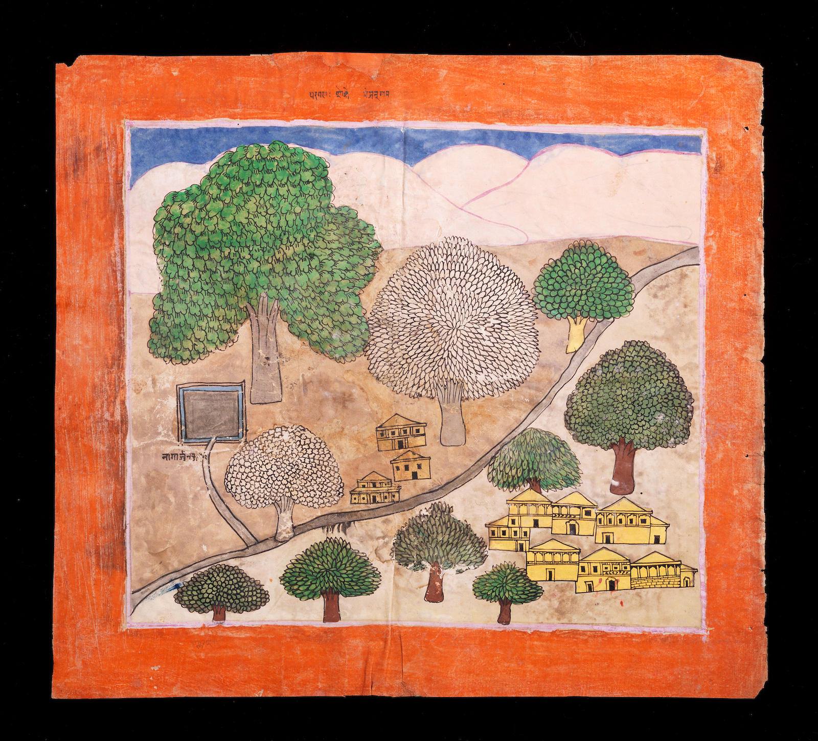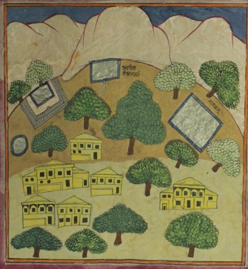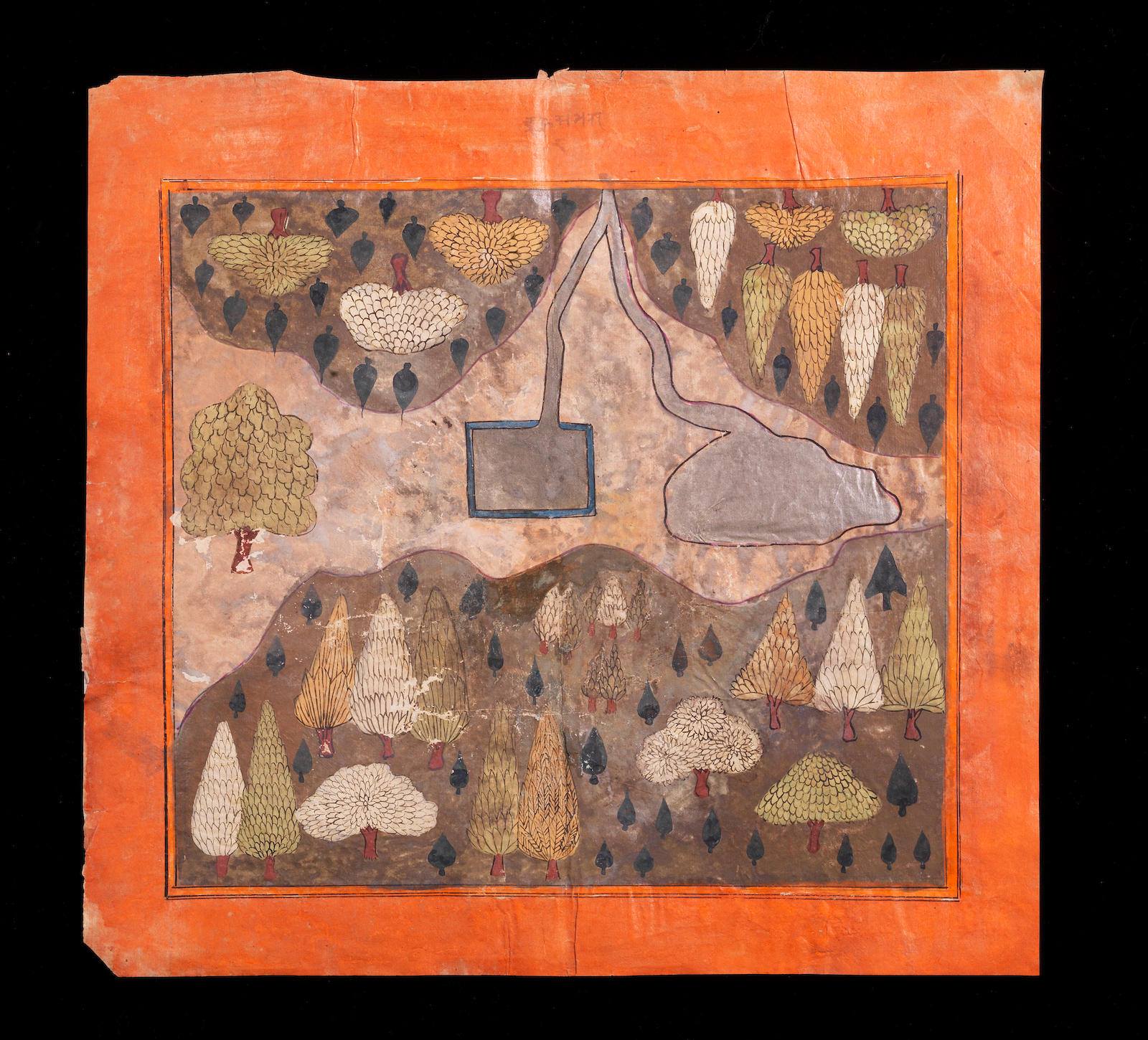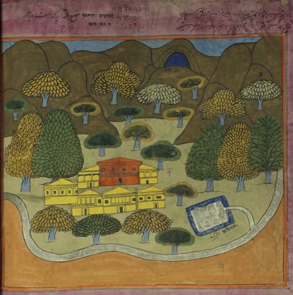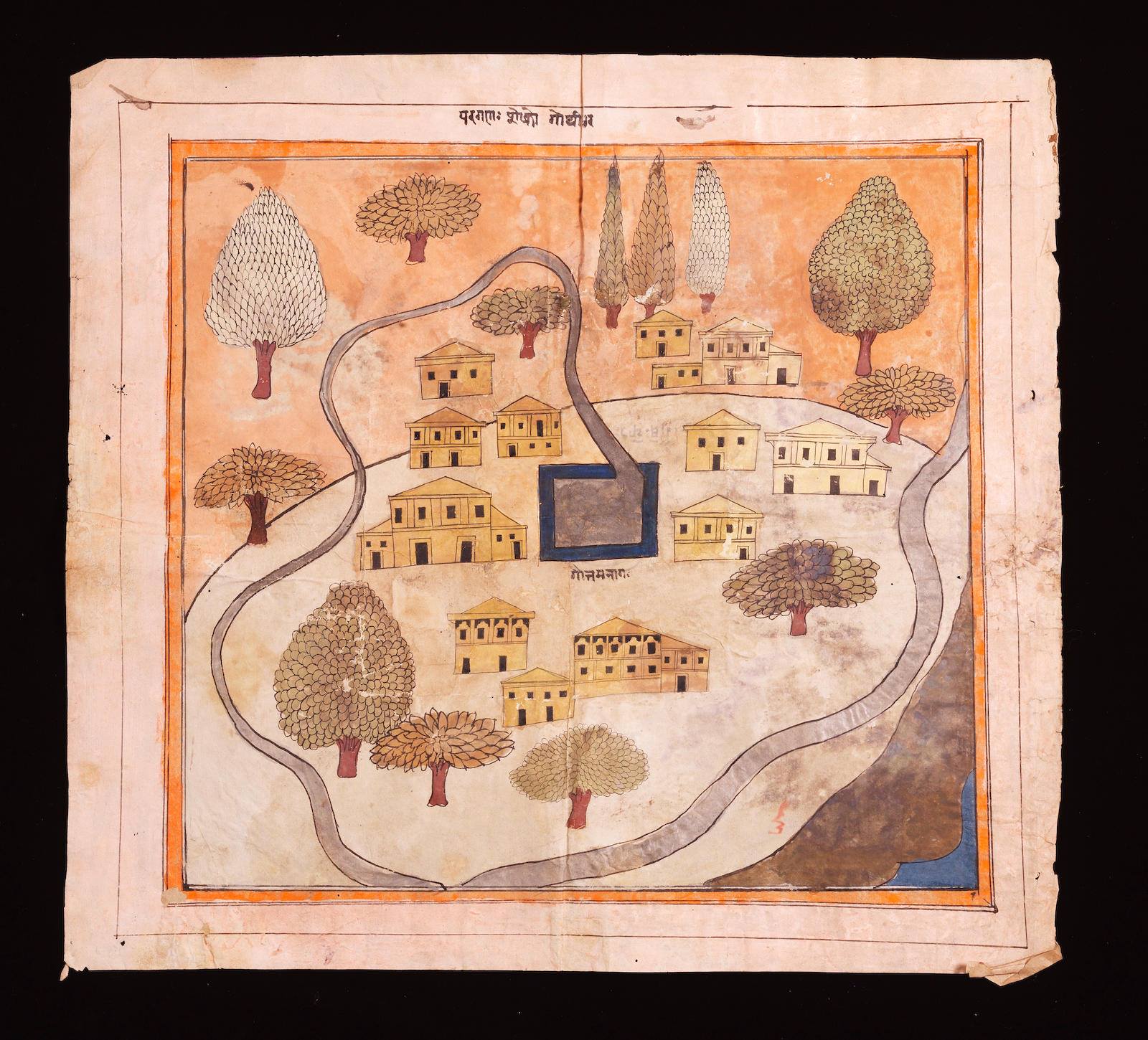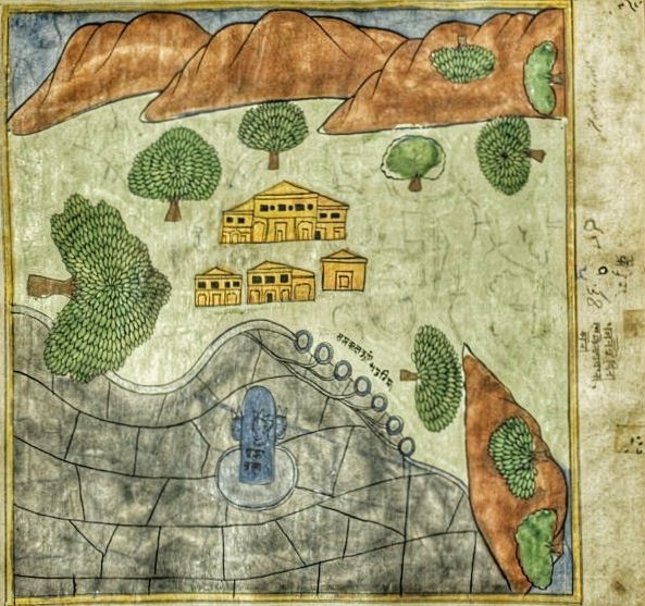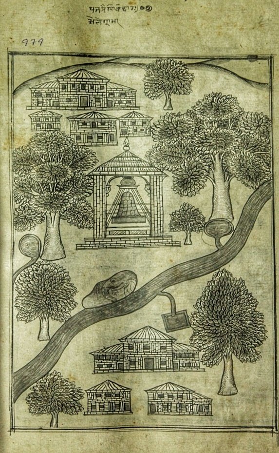 What made Sahib Ram Kaul stand out was not just his skills of the languages (Sanskrit, Persian [he studied in a Persian language Maktab (school)] till the age of 18, picking up sanskrit only in adulthood) and his work on texts (ranging from shastras, kvyas, itihasa, commentary on erotica [Pañcasāyaka of by Kaviśekhara Jyotirīśvara], translation of work on Islamic morality [Ahalq-e Mohseni/Viraratnasekharasikha]) but his rooted understanding of geography of Kashmir in which he was able to visualize the past from present. The materialization of that vision of Sahib Ram Kaul was Kashmiriatirathasangrah, a work compiling all the major holy spots of Kashmir, mostly various nagas/springs all over the valley based on texts like Nilamatapurana, Kalhana’s Rajatarangini and Abu’l Fazl’s Ain-i-Akbari. Along with notes (in Sanskrit) Tirathasangrah had maps of the holy sites with topographical identifiers, local lore and village names. To compile the work, pandits across the valley were roped in to help collect the material. If there was a local spring or a holy village in some remote village, even that was recorded by Sahib Ram diligently. However, the work was never completed as Sahib Ram died in around 1870 or 72. The incomplete work already comprised hundred on pages of folia with maps, many of them incomplete, just sketched, not painted, some with no notes. The monumental work however was taken up again a few years later by his son Damodar Kaul