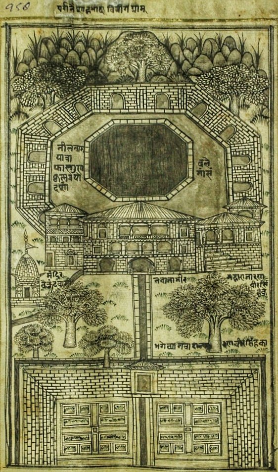 About 250+ pages of maps from Tirathsangrah of Sahib Ram are at S.P.S Museum Srinagar (not on display!). A low-res digital version (with no proper details) was shared by them with National Mission on Monuments and Antiquities (NMMA), the (statewise) database for heritage, sites and antiquities.