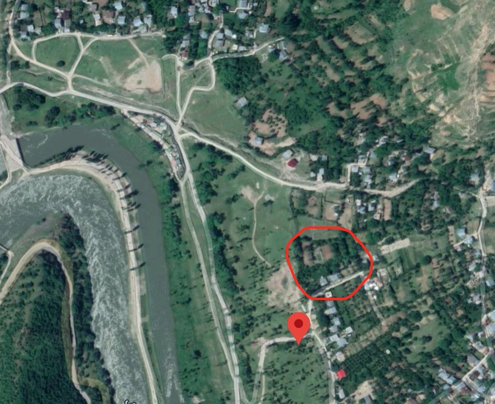 Reason for assumption: Single bridge on the river. Notice the tank temple on right, the same structure can be seen in the map giving the location of Naranthal shrine [jalshree] in Baramulla.