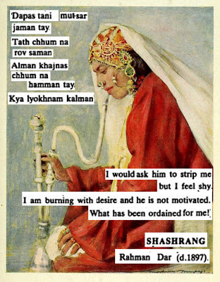 Found the lines and translation in Encyclopaedia of Indian Literature: sasay to zorgot edited by Mohan Lal, from a section by Shafi Shauq on the poet.