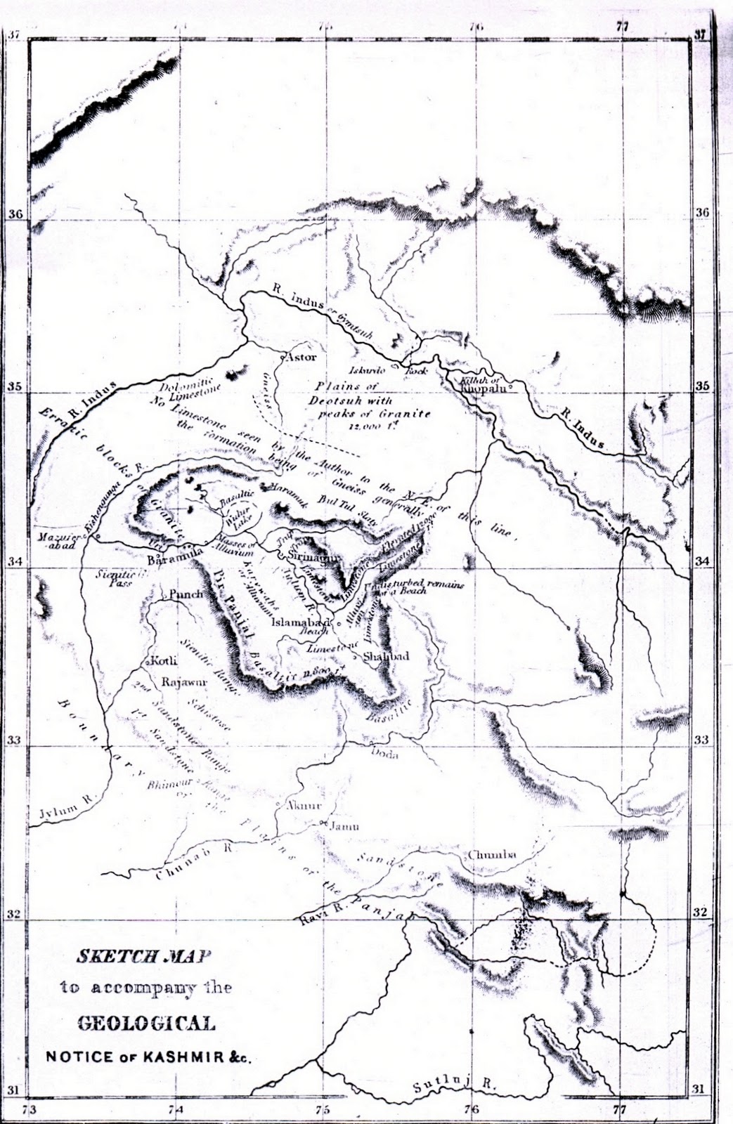 | Sketch map of Jammu & Kashmir by J .& C.Walker Sculpt., 1842 |