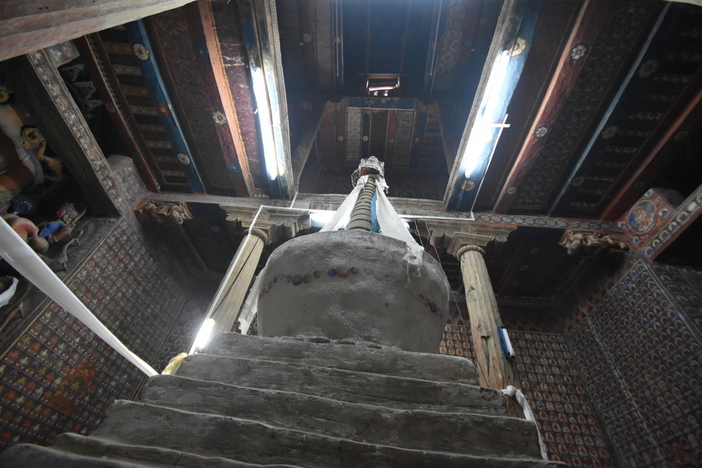 Although Ladakhi tradition places the monastery in 10th century and to Zangpo, inscriptions at the temple ascribe the monastery to a Tibetan noble called Kal-dan Shes-rab later in the 11th century. The various temples here are now dated to be between early 12th and early 13th centuries. A period of great religious and political upheaval for the entire region with the coming of Ghaznavid Attacks on the sub-continent, but miraculously, owning to its geographic location, left this place untouched.