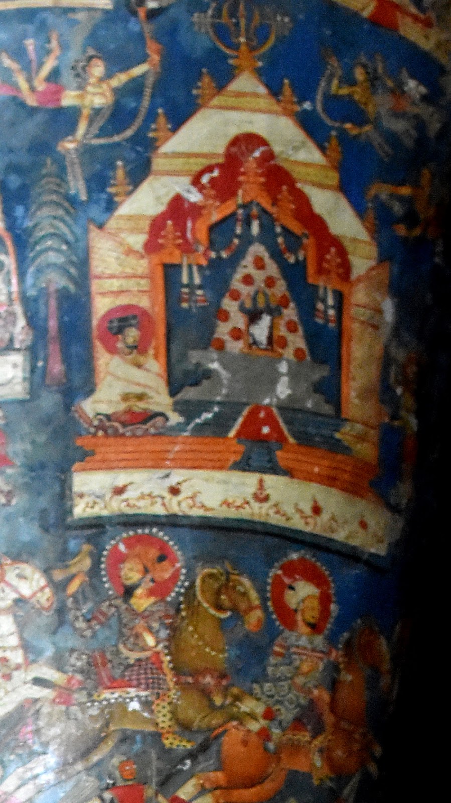 The Kashmiri painters at Alchi have drawn these scenes around bodhisattva Avalokiteśvara in Sumtseg temple of Alchi. Avalokiteśvara, ‘the lord who looks down’, the buddha of compassion, is said to live on mythical mountain Potalaka which modern scholars say is in fact Pothigai hills of Western Ghats (Tamil Nadu/Kerala).