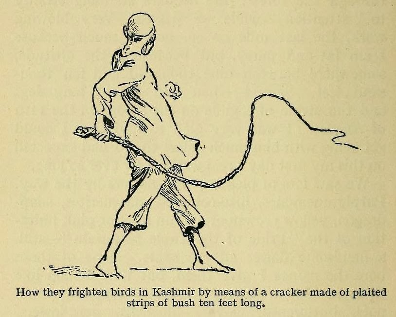 | “How they frighten birds in Kashmir by means of a cracker made of plaited strips of bush ten feet long” ~ ‘Indian Memories: Recollections of Soldiering Sport, Etc.’ (1915) by Sir Robert Baden-Powell, father of Scout Movement. |