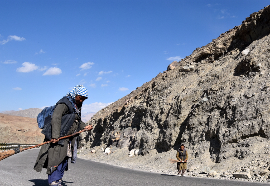 A Brokpa working in one of the only farms still functional