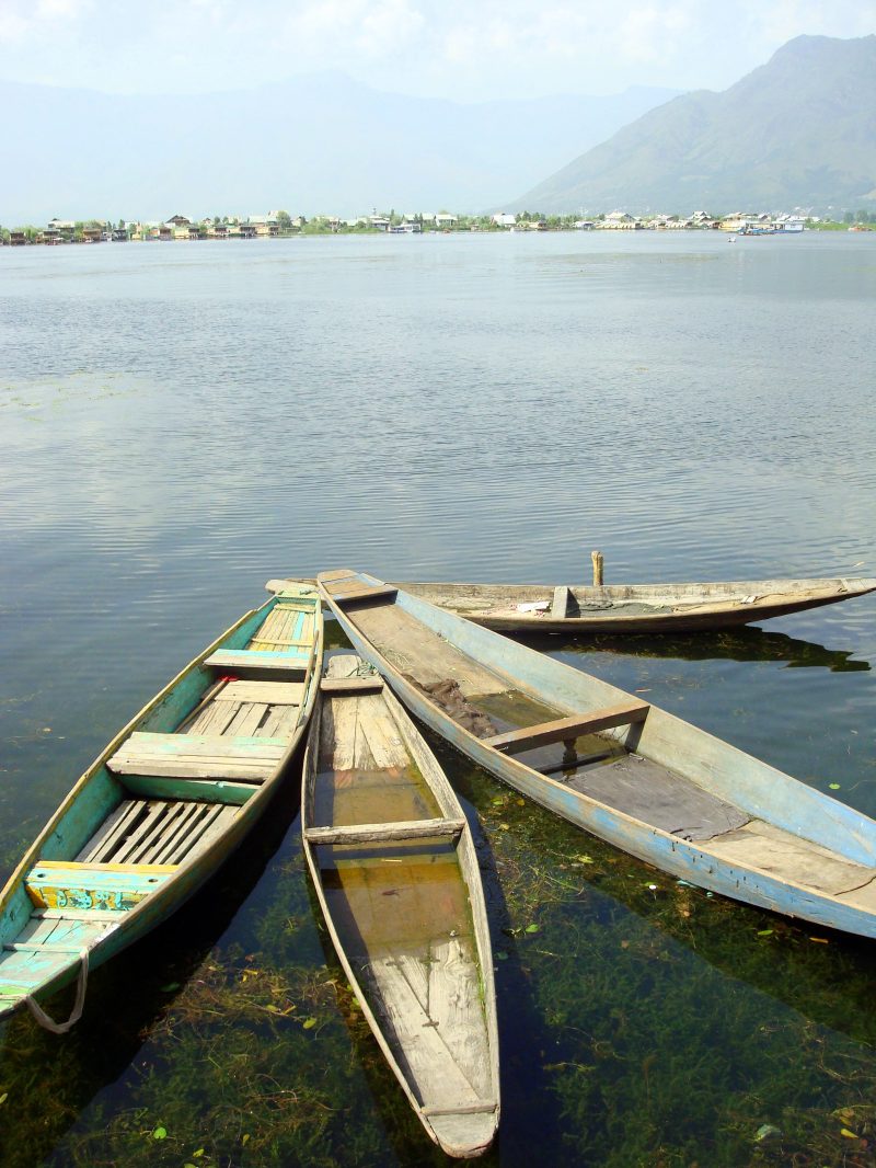 View from a Shikara floating on Dal Lake.