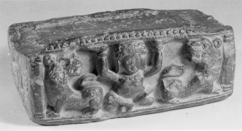 | Pedestal with Yaksha and two lions, 9th century, Kashmir Image: metmuseum |