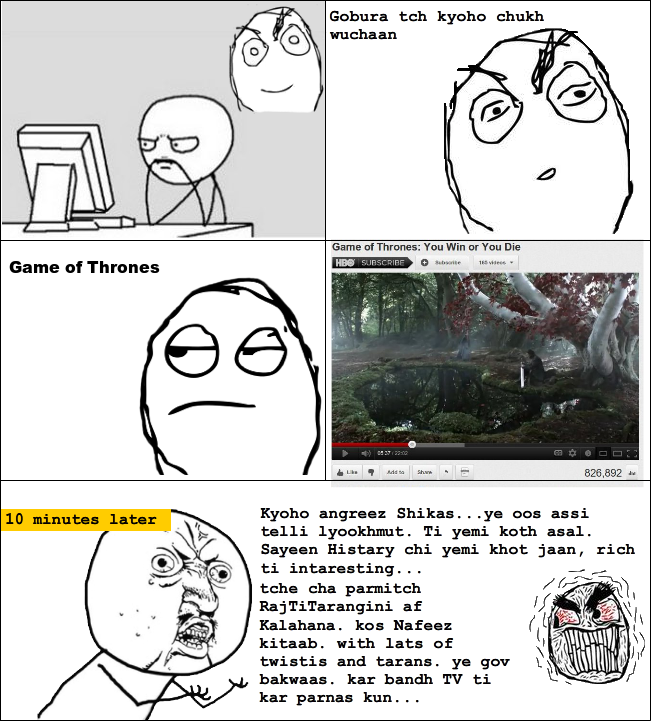 On 26th January, I was bored. But a thought occurred to me. Since the nation, with all its glory, had arrived at the footsteps of my house in Srinagar, with its uniformed men and bunkers and armoured vehicles, all apparently to guard us from something horrible, I decided to celebrate the Republic day of India in grand style. I decided to make Indian flags, not just one or two but as many as I could and put them all over the house. The process of making the flag was simple and I had all the materials it needed. The process went like this: You tear a fresh page from a notebook, you turn this page around so that the length become the breadth and the breath becomes the length. Then using a pencil you draw two parallel lines on it in such a way that it divides the page into three equal part. If the partitions don’t look good, erase the lines using a rubber and start afresh. If you still fail, tear a fresh page and start all over again. Once you get the division right, in the center partition, make a circle touching the two lines and inside this circle draw exactly 12 lines dissecting each other and meeting in the center of the page, inside the circle at a single point. They will magically give you the Dharma wheel of Ashoka with its 24 spokes. Now, take two sketch pens, one orange and other green, and using your teeth pull out the caps from both of them and get their wet spongy innards out. You might get your hands dirty and colored in the process, but that’s the fun part. After this, take the orange filler, leaving the center partition untouched, paint one of the partitions orange. Take the green filler and paint the other partition green. Your flag is almost ready but have to attach it to a staff to be able to hold it or stick it somewhere. For this you will need a broom and some cooked rice. Get them from your grandmother. Don’t tell her what’s it for. There is good chance your will be denied access to both, if you do tell her. Once you have the broom, take a twig out of it, and using the rice as gluing agent, attach the flag to it. While attaching, keep in mind that the orange partition is supposed to be at the top of flag and green at the bottom, and not the other way round. If you follow all the steps to the T, you will have your Indian flag. The symbol of your nation.