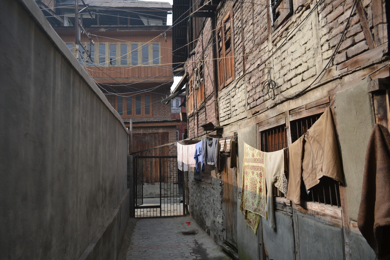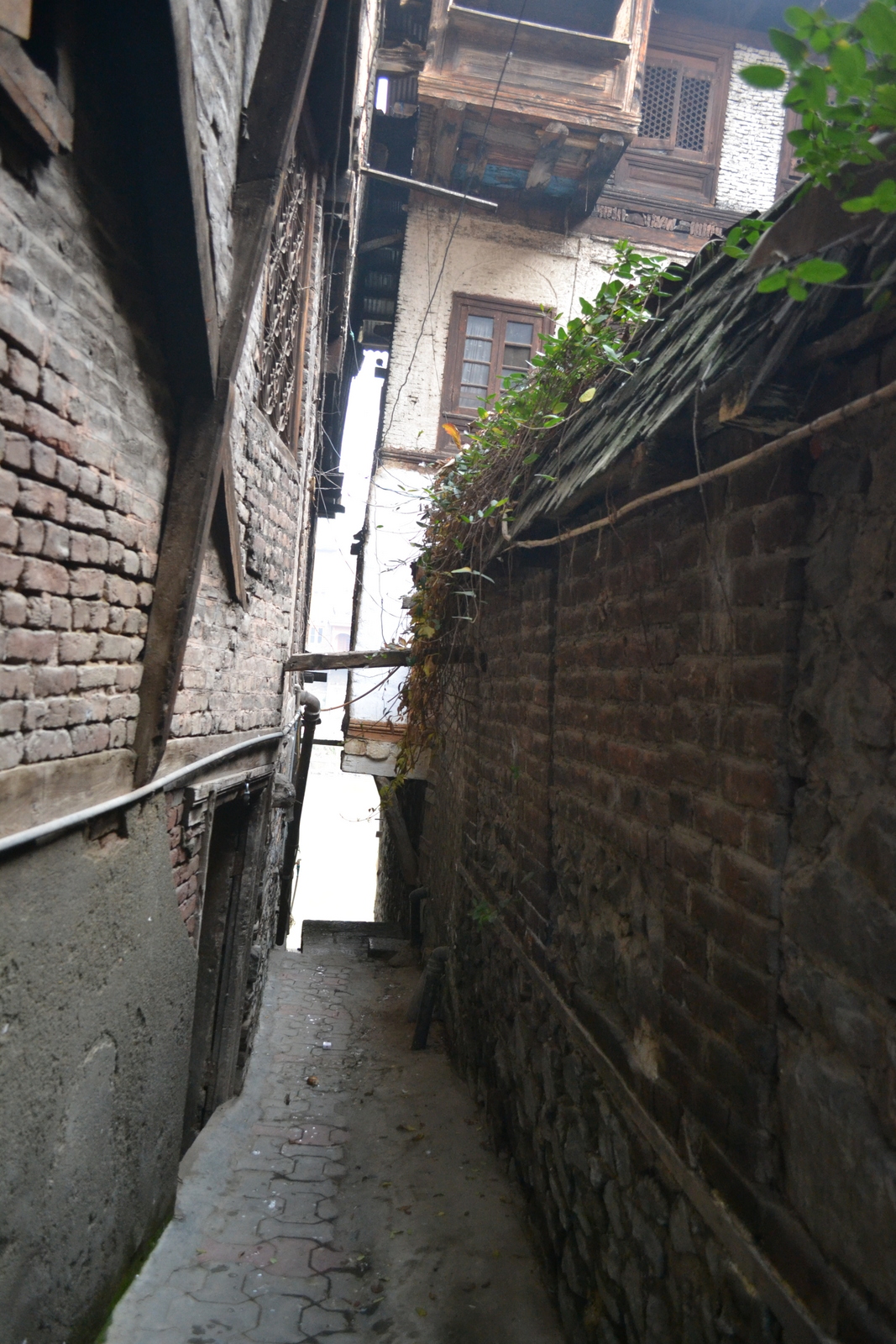 Vinod Razdan: I was just waiting to find that someone will identify this place .In fact this lane was a connecting lane between the two lanes : one Leading to Ganpatyar and another terminating through the milk Shop owned by ” Freich Dedd” .Both lanes led to Nai Sarakon the other end.The projected link between the two houses ( Dabb) is near the house of Prof.M L Wangoo , back side of the houses were those of Vijay Garyali , Sumbli’s etc.