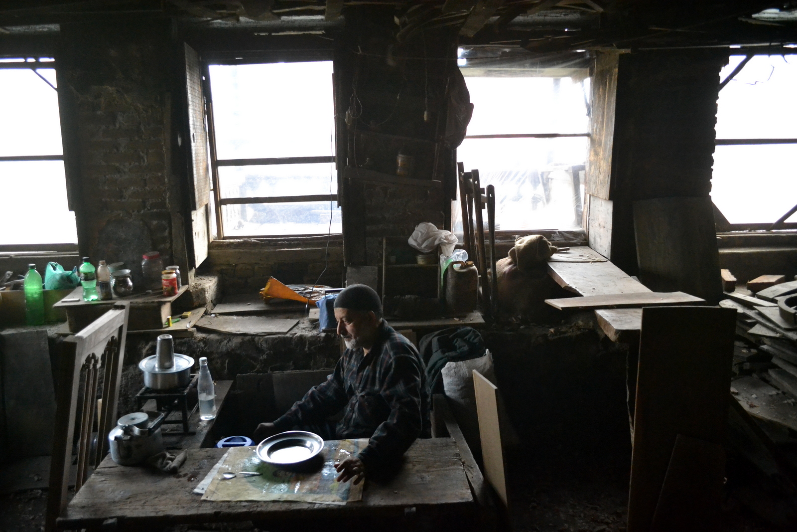 Comment by Vinod Razdan: [Location]Ganpatyar , the small dilapidated house was occupied by Ram Ji , Kashmiri Hindu Baker . The person on the window is late Gopi Nath Raina . The photograph must have been surely taken from the house of Late R C Pandita.