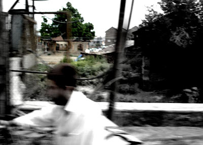 A sad laughter escaped deep from his throat and turning away from the car window, he went back to reading a local Urdu newspaper from Kashmir.